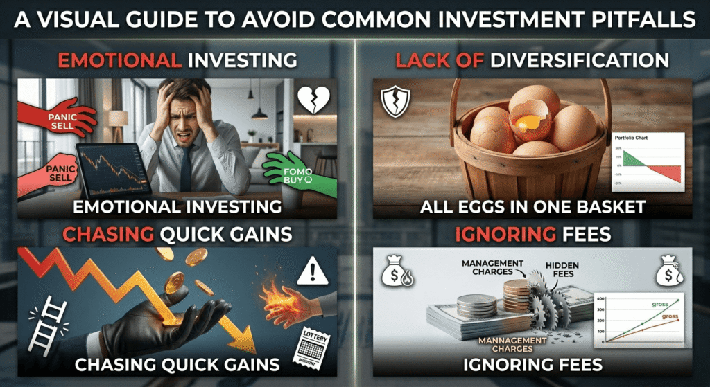 - Emotional investing – The fear and excitement tend to make poor decision-making.
